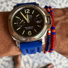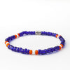 This is Knickerbocker, named after the colors of the New York Knicks. It is hand-beaded from blue, orange and white glass beads in a color-block pattern and a 100% sterling silver Billy Baker Co. logo piece.