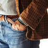 This is Kemosabe, named after our favorite western store in Aspen, Colorado. It is made from rare Campitos Turquoise from Mexico, with no added color or dye and a 100% sterling silver Billy Baker Co. logo piece.