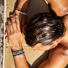 This is Ed, named after Ed Shaikh who owns the bespoke fashion brand Hadleigh's. Cobalt blue is the brand's signature color. It is made from cobalt blue glass beads from Africa, and a 100% sterling silver Billy Baker Co. logo piece.