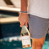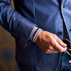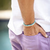 This is Domino, named after the slang term of bones used for the game of dominoes. It is made from ivory bone beads from China and a 100% sterling silver Billy Baker Co. logo piece.