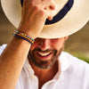 This is San Marco, named after the famous Piazza San Marco in Venice, Italy. It is made from a colorful assortment of African Christmas beads and a 100% sterling silver Billy Baker Co. logo piece. These beads were originally made in Venice for trade with Africa but are now mostly made in Ghana.