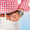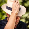 This is Limoncello, named after the Italian lemon liqueur mainly produced in Southern Italy. It is a larger version of our San Marco bracelet and made from a colorful assortment of African Christmas beads and a 100% sterling silver Billy Baker Co. logo piece. These beads were originally made in Venice for trade with Africa but are now mostly made in Ghana.